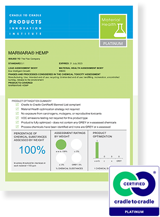 Marmara Hemp is the first hemp fiber to be certified as sustainable, Cradle to Cradle (Platinum level) and with a Life Cycle Assessment performed by a certified body.